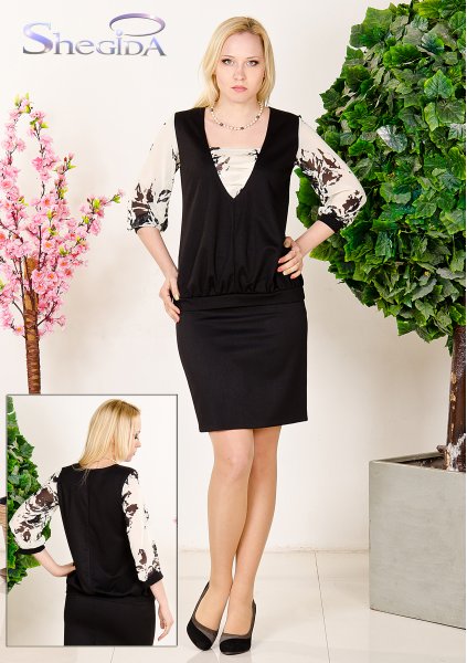 Блузка свободного силуэта. Ткань Джерси, шифон. Изюминкой служит шифоновая отделка горловины и рукава. Длина 64 см в 46-48 разм. Длина 67 см 50-54 разм.